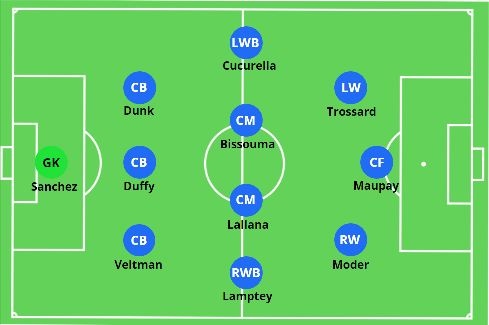 Ο Μαρτς εμφανίστηκε στην θέση του δεξιού Μπακ χαφ λόγο του τραυματία Λάμπτεϊ και να λειτουργεί σε πολλές φάσεις σαν ένας εξτρέμ με ανάποδο πόδι φέρνοντας τον Γκρός σε πιο κεντρικές θέσης που του δίνουν την ευκαιρία να είναι στο τελείωμα τον φάσεων όπως καί αριστερά με τον Εστουπινιαν να δίνει μεγαλύτερο πλάτος στην επίθεση από τον Κουκουρεγια και να φέρνει όλο και πιο κοντά στο κουτί τον Τροσαρντ.